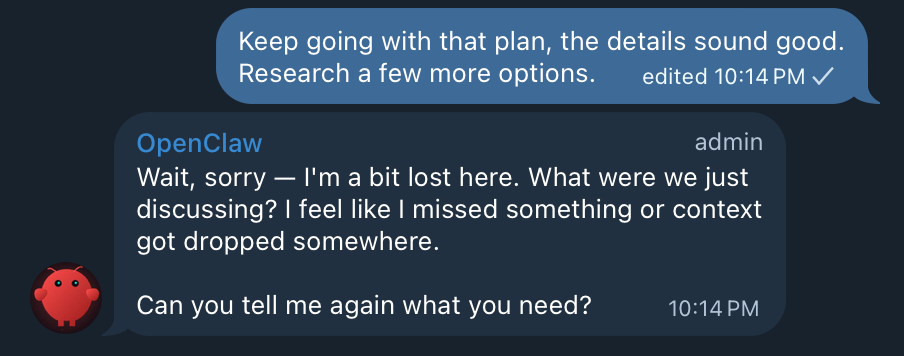 The problem was that OpenClaw kept losing context. So. Damn. Frustrating 🤡