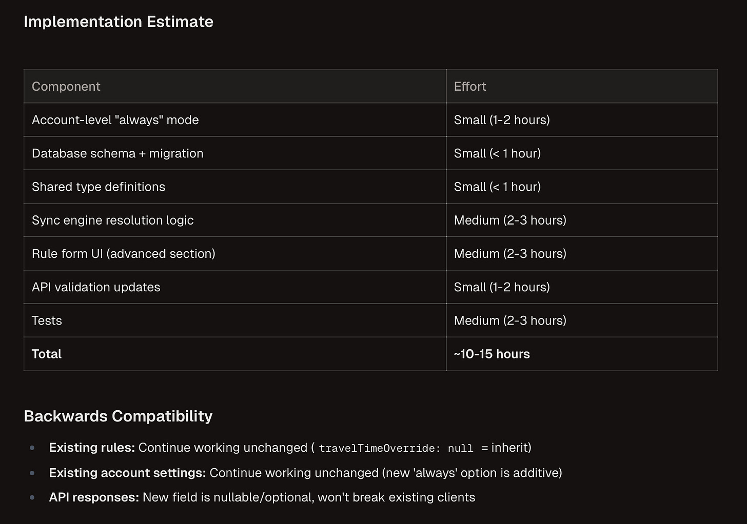 Last week, Claude Code was assessing the complexity of a new feature and it came back with a work breakdown and time estimate of “10-15 hours.”